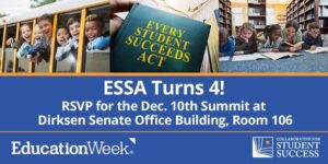 Four years ago this month, the Every Student Succeeds Act (ESSA) was signed into law. To mark the anniversary, the Collaborative for Student Success is hosting an event on December 10th at the Dirksen Senate Office Building in Washington, D.C. The afternoon event will include remarks from some of ESSA’s congressional authors, and feature a series of focused discussions related to the implementation of the law four years after its passage.