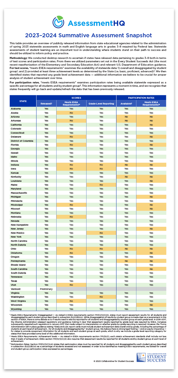 The adage of ‘if it looks too good to be true, it probably is’ applies here. States that lower proficiency standards may show exaggerated gains on Assessment HQ. To understand whether this is – or is not – the case, we utilized the new NAEP results released on January 29, 2025, along with our database of statewide summative assessment data for the 2023-24 school year to create the chart below.