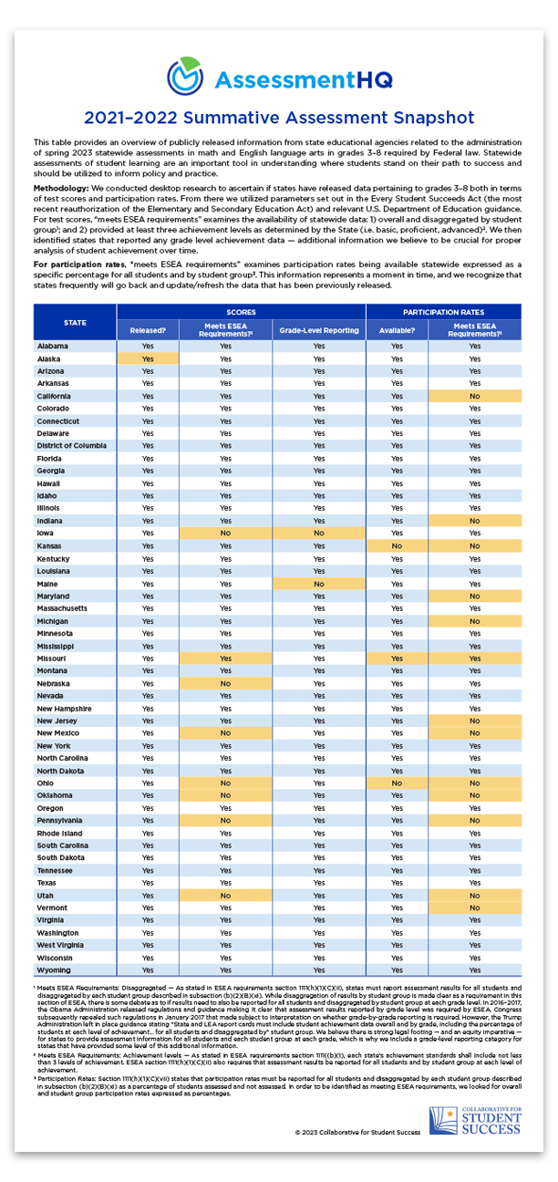 This snapshot provides an overview of publicly released information from state educational agencies related to the administration of spring 2022 statewide assessments in math and English language arts in grades 3–8 required by Federal law. Statewide assessments of student learning are an important tool in understanding where students stand on their path to success and should be utilized to inform policy and practice.